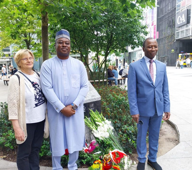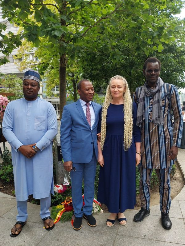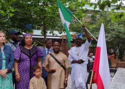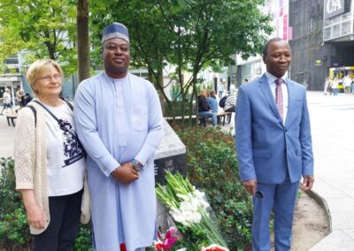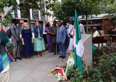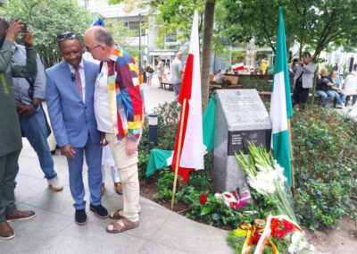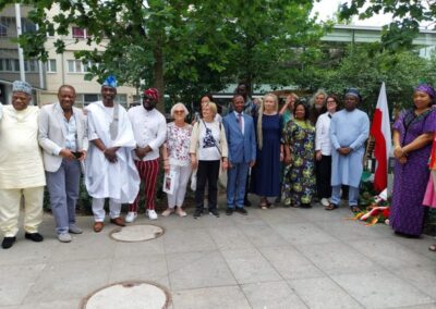 Ceremonialne złożenie wieńców z udziałem Ambasady Nigerii w Warszawie,Organizacji Nigeryjczyków w Diasporze – Polska (NIDOP), gości VIP, rodziny AAB oraz społeczności nigeryjsko-polskiej.