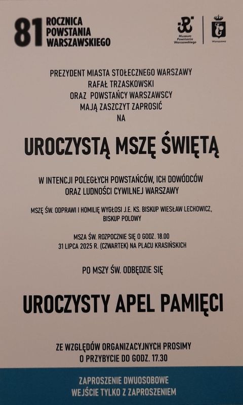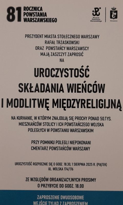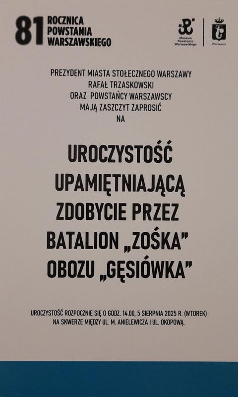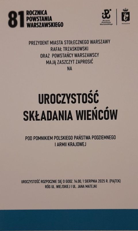 W 81. rocznicę Powstania Warszawskiego – 1 sierpnia 2025 r., wzorem lat ubiegłych, odbyły się uroczyste obchody pamięci bohaterów powstania, ofiar ludności cywilnej oraz powstańców, którzy przeżyli hekatombę.